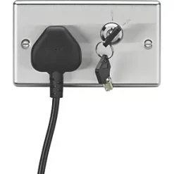 Knightsbridge CL9LOCKBCW 13A Key Switch 1-Gang DP Switched Socket Brushed Chrome with White Inserts