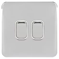 Schneider Electric Lisse Deco 10AX 2-Gang 2-Way Light Switch Polished Chrome with White Inserts