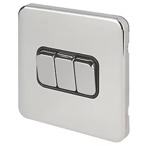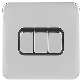 Schneider Electric Lisse Deco 10AX 3-Gang 2-Way Light Switch Polished Chrome with Black Inserts