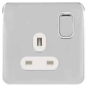 Schneider Electric Lisse Deco 13A 1-Gang DP Switched Plug Socket Polished Chrome with White Inserts