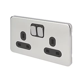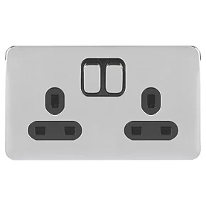 Knightsbridge SFR9000BC 13A 2-Gang DP Switched Double Socket Brushed Chrome with Black Inserts