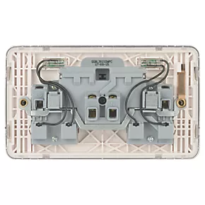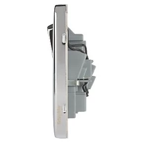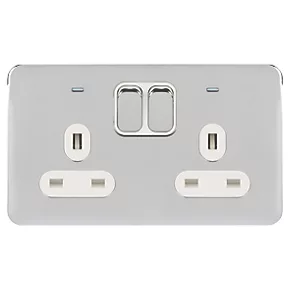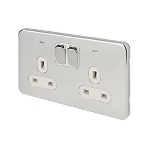 Schneider Electric Lisse Deco 13A 2-Gang DP Switched Plug Socket Polished Chrome with LED with White Inserts
