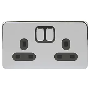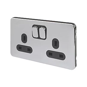Schneider Electric Lisse Deco 13A 2-Gang SP Switched Plug Socket Polished Chrome with Black Inserts