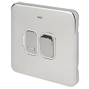 Schneider Electric Lisse Deco 13A Switched Fused Spur with LED Polished Chrome with White Inserts