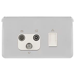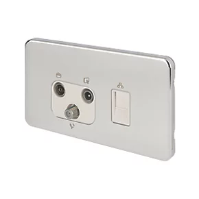 Schneider Electric Lisse Deco 2-Gang Quadruplex Multimedia Socket Polished Chrome with White Inserts