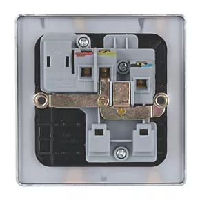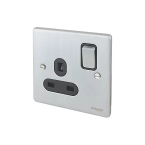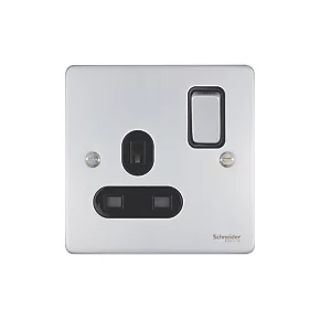 Schneider Electric Ultimate Low Profile 13A 1-Gang SP Switched Plug Socket Brushed Chrome with Black Inserts
