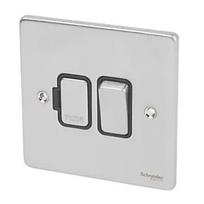Schneider Electric Ultimate Low Profile 13A Switched Fused Spur Brushed Chrome with Black Inserts