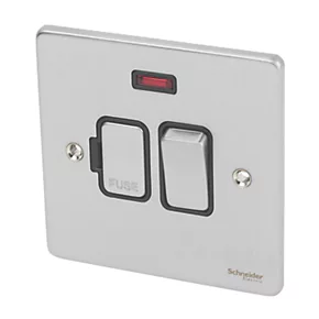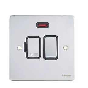 Schneider Electric Ultimate Low Profile 13A Switched Fused Spur with Neon Brushed Chrome with Black Inserts