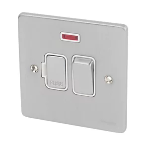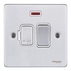 Schneider Electric Ultimate Low Profile 13A Switched Fused Spur with Neon Brushed Chrome with White Inserts