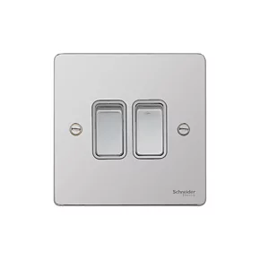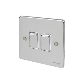 Schneider Electric Ultimate Low Profile 16AX 2-Gang 2-Way Light Switch Polished Chrome with White Inserts