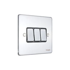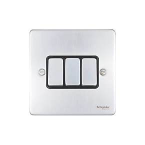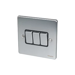 Schneider Electric Ultimate Low Profile 16AX 3-Gang 2-Way Light Switch Brushed Chrome with Black Inserts