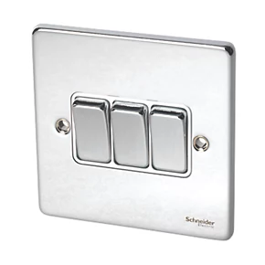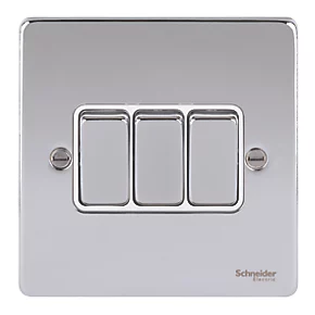 Schneider Electric Ultimate Low Profile 16AX 3-Gang 2-Way Light Switch Polished Chrome with White Inserts