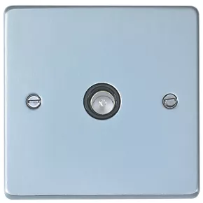 Low profile coaxial socket. Contemporary, soft-curved edge design with brushed chrome finish. Colour-matched faceplate screws.