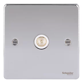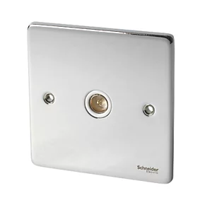Schneider Electric Ultimate Low Profile Coaxial TV Socket Polished Chrome with White Inserts