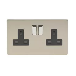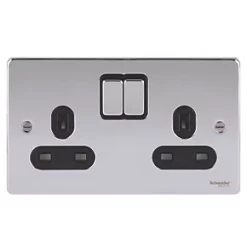 Schneider Electric Ultimate Low Profile Coaxial TV / FM Socket Brushed Chrome with Black Inserts