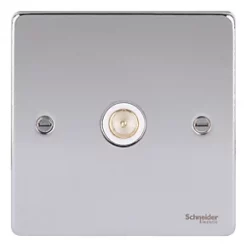 Schneider Electric Ultimate Low Profile Coaxial TV Socket Polished Chrome with White Inserts